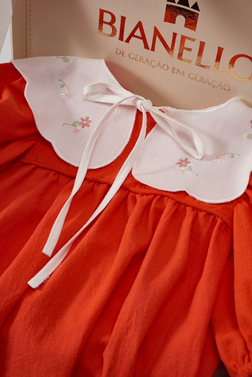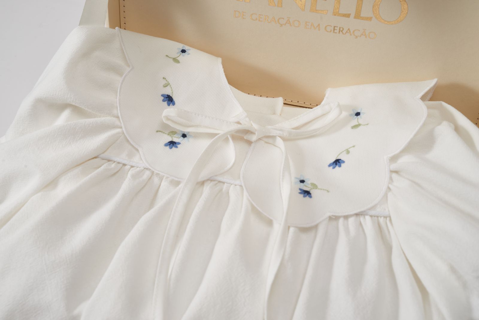 Encanto e conforto em cada detalhe! O Bombacho Poliana é confeccionado em linho leve e macio, perfeito para acompanhar os momentos especiais da infância. Possui mangas bufantes, modelagem ampla e uma gola bordada com delicadas flores, que pode ser removida, oferecendo duas opções de uso — com ou sem gola. Uma peça versátil, charmosa e cheia de personalidade para compor looks inesquecíveis.