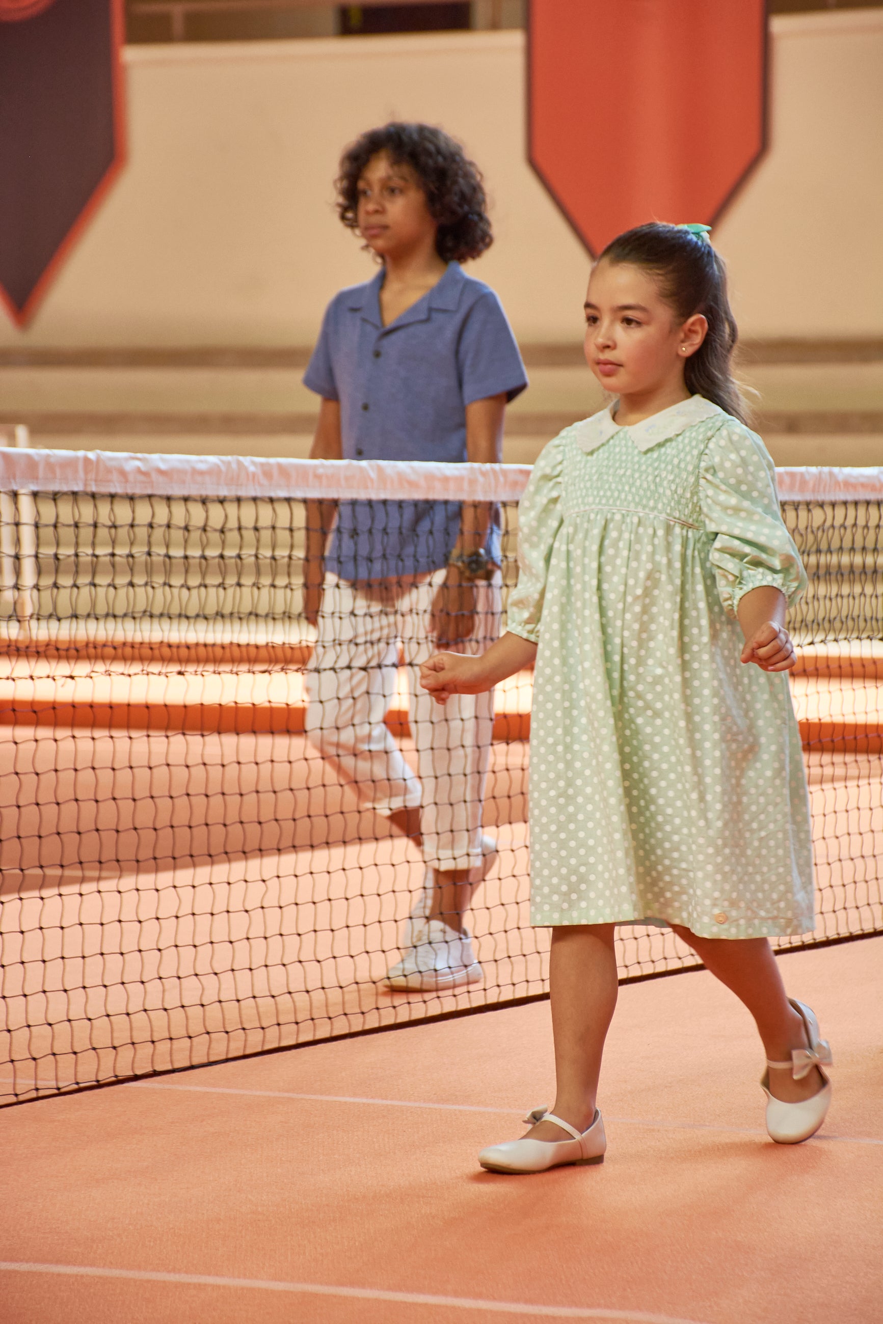 Delicadeza e charme definem este vestido em tom verde menta com estampa clássica de poá branco. Confeccionado em tecido leve e confortável, ele é perfeito para ocasiões especiais ou passeios ao ar livre. O modelo conta mangas bufantes e gola bordada com florzinhas delicadas, que trazem um toque vintage irresistível à peça. Fechamento nas costas com botões para facilitar na hora de vestir.
