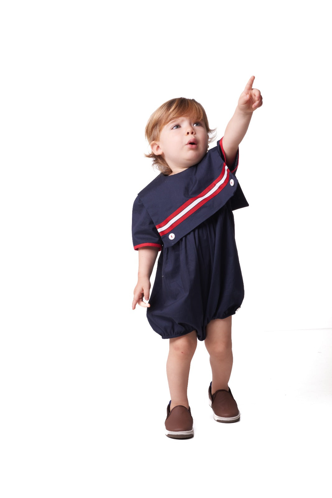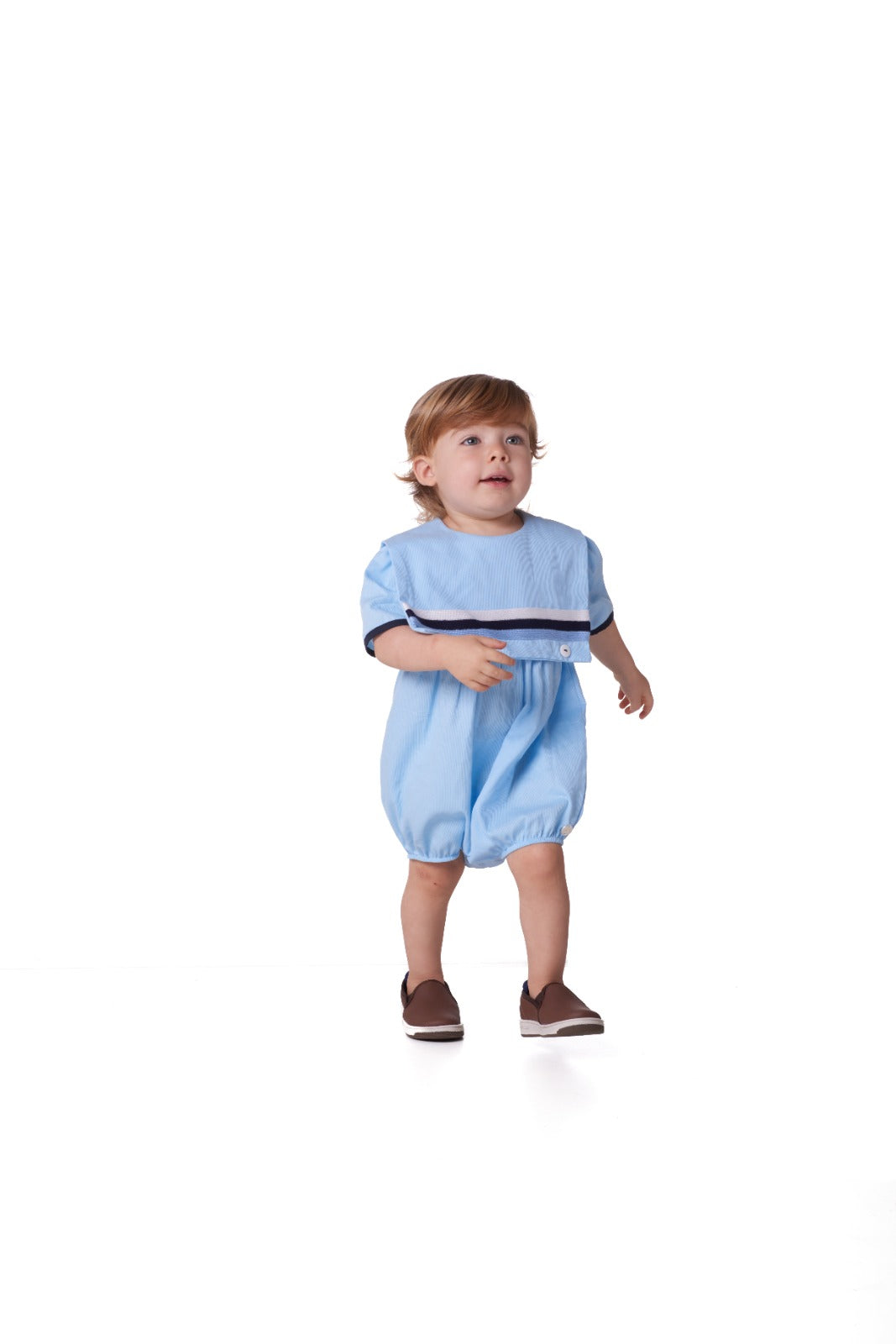 O Romper Bento combina charme e suavidade em cada detalhe. Feito em fustão leve, envolve o bebê com conforto e frescor. Sua pala com listras delicadas e acabamento contrastante nas mangas traz aquele toque clássico que nunca sai de moda. Uma peça perfeita para eternizar momentos especiais com elegância e doçura.